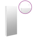 Keep your jewellery and perfumes discreetly and elegantly stored away with this stylish mirror jewellery cabinet with LED lights! Durable material: The engineered wood is of exceptional quality with smooth surface and also features strength, stability and resistance to moisture. Made of engineered wood, the jewellery cabinet is easy to clean with a damp cloth.Ample storage space: The storage mirror offers plenty of hooks, hangers and shelves to keep your jewellery neatly organised and within reach.Practical mirror: With a practical mirror, this jewellery organiser is great for getting ready and applying make-up.Considerate protection: The jewellery storage has a lockable door and comes with 2 keys to ensure the safety of your items. Also, the soft fabric cover inside not only adds elegance but also protects your beloved jewellery from scratches.Convenient LED lights: Located at the top inside, the LED lights automatically turn on when the door opens to help you find your jewellery.Space-saving design: Hang the mirror jewellery box over the door with the included hooks or mount it on the wall to save floor space. Good to know:Screws for wall mounting are included.3 AA batteries are required but not included in the delivery.