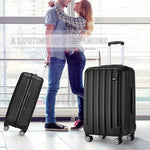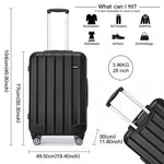 K1773-1L - Kono 28 Inch Striped ABS Hard Shell Luggage with 360-Degree Spinner Wheels - Black