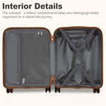 KSK2484+EQ2401 - Kono 20 Inch Stylish Hard Shell ABS+PC Cabin Suitcase Included Multi-Compartment Backpack with Small Pouch 3 Piece Travel Set - Black And Brown