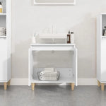 This sink cabinet is meant to be a great addition to your bathroom, giving it a tidy and striking appearance! Durable material: The engineered wood is of exceptional quality with smooth surface and also features strength, stability and resistance to moisture. Made of engineered wood, the bathroom vanity unit is easy to clean.Ample storage: The under sink cabinet has a large compartment, offering extra storage space to store items in your bathroom. The top of the cabinet is ideal for placing the sink.Wooden feet: The wooden feet of the bathroom sink unit ensure sturdiness and stability.Practical doors: Keep your essentials free from dust by hiding them behind the doors of this bathroom cabinet. Good to know:The sink is not included in the delivery. Warning:To prevent it being overturned, this product must be used with the provided wall attachment device.
