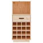 This trendy wooden wine cabinet holds wine bottles, including everything necessary so you can enjoy a glass of wine at any time. Solid pine wood: Solid pine wood is a beautiful natural material. Pine wood has a straight grain, and the knots give the material its signature, rustic look.Sturdy frame: The wooden frame ensures sturdiness and stability.Ample storage space: The wine cupboard provides ample storage space to store your wine. It is ideal for holding up to 16 bottles of wine. It is also designed with a drawer and a compartment, which are suitable for keeping any other accessories. Note:Each product comes with an assembly manual in the box for easy assembly.Warning:In order to prevent overturning, this product must be used with the wall attachment device provided.