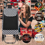 The shopping trolley also features a non-slip handle, side pockets, small back pocket with a zipper for your personal belongings and a foldable metal buckle design.