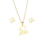 Mother's Day Jewelry Set Stainless Steel I Love Mom Mama Love Heart Pendant Necklace Earrings Thanksgiving Gift