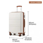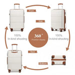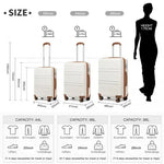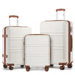 K1871-1L - Kono ABS Sculpted Horizontal Design 3 Piece Suitcase Set - Cream