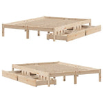 Get a better restful night's sleep from this bed frame! It makes a welcoming addition to any bedroom. Stable and long-lasting frame: Solid pinewood is known for its strength and durability. Its straight grains and distinctive knots contribute to its rustic charm.Slatted base for optimal support: The bed frame is equipped with a slatted base for support and breathability for your mattress.Make full use of space: This bed frame features two drawers underneath, providing storage for items like extra bedding, seasonal clothing, and toys.Effortless manoeuvrability: This under-bed storage drawer features four wheels, providing smooth and effortless manoeuvrability for sliding in and out from beneath your bed. Good to know:A mattress is not included with this bed. We do offer a various selection of mattresses. You can check our shop for a matching mattress.