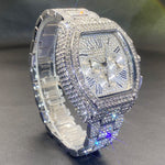 Hip Hop Men's Full Diamond Multi-function Chronograph Luminous Tonneau Quartz Watch