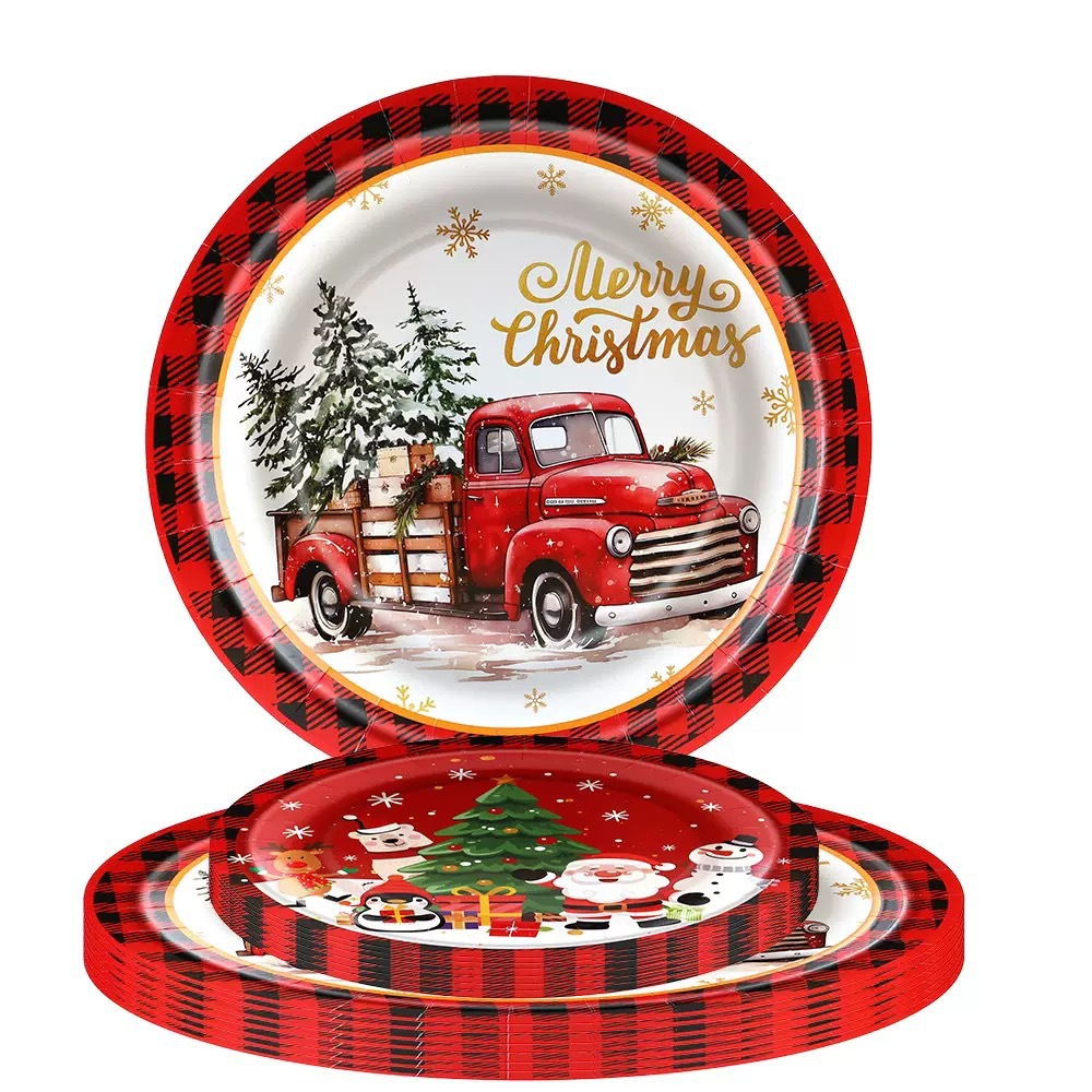 Christmas Party Birthday Supplies Disposable Paper Cups Napkins Plates Tablecloth Set