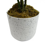 A realistic plant, measuring 55cm tall x 30cm wide when arranged as shown in our photos. It comes fully potted in a plastic weighted pot which measures 12cm (d) x 11cm (h) approx. Requires no maintenance or watering and is ready to display straight out of the box. Entirely artificial components. Comes in a decorative plastic weighted pot as shown. Leaf Design UK product.