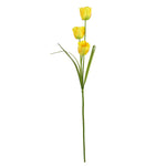 Realistic 80cm artificial tulip flower stem, featuring three beautifully crafted flowers with silk petals and realistic plastic leaves. The fully wired design allows for easy shaping and arrangement, making it a versatile addition to any decor. These look particularly nice when combined with foliage to create a larger display. Some of our photos show vases to give an idea of size and possibilities for arrangement, but no vases or planters are included with this foliage.