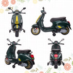 AIYAPLAY 12V Vespa Licensed Kids Electric Motorbike w/ Music, Headlights, FM Radio, for 3-6 Years - Green