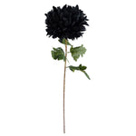 Leaf Design Product. Black extra large Reflex Chrystanthemum with silk petals. Can be used to make arrangements with our other artificial flowers or as decorations on their own. Each stem measures 75cm overall height x 20cm wide x 20 deep and has a single large flower head. Flowers are silk. These are easy to cut down shorter using a pair of wire cutters if required. Some of our photos show vases to give an idea of size and possibilities for arrangement but no vases or planters are included with these flowers.