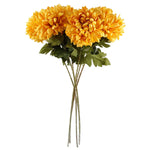 Leaf Design Product. Pack of 6 x Orange extra large Reflex Chrystanthemum with silk petals. Can be used to make arrangements with our other artificial flowers or as decorations on their own. Each stem measures 75cm overall height x 20cm wide x 20 deep and has a single large flower head. Flowers are silk. These are easy to cut down shorter using a pair of wire cutters if required. Some of our photos show vases to give an idea of size and possibilities for arrangement but no vases or planters are included with these flowers.