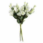 Leaf Design Product. Pack of 6 x White artificial wild rose stem. Can be used to make arrangements with our other artificial flowers or as decorations on their own. Each stem measures 80cm overall height x 12cm wide and has six flowers. Flowers are silk. These are easy to cut down shorter using a pair of wire cutters if required. Some of our photos show vases to give an idea of size and possibilities for arrangement but no vases or planters are included with these flowers.