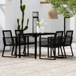 Create a compelling and cohesive aesthetic in your outdoor space with this garden dining set! Stable frame: This dinner table is made of a powder-coated steel frame, sturdy and stable for daily outdoor use.Glass tabletop: The smooth glass tabletop is easy to clean with a damp cloth and perfect for placing meals, drinks, and other decorative items. Dueable material: The garden chairs are made of PVC rattan, woven over a fine lacquered steel frame, making them stable and resistant to poor weather and UV rays. Good to know:In order to extend the life of your outdoor furniture, we recommend you to protect it with a waterproof cover.