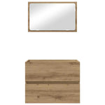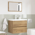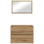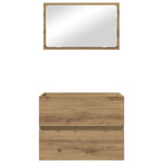 This Engineered Wood Bathroom Furniture Set offers a sleek and modern addition to any bathroom. Characterized by its simple yet functional design, it features smooth lines and minimal ornamentation that effortlessly complements contemporary decor styles. Imagine stepping into your bathroom and being greeted by the elegant symmetry of this furniture set. The vivid contrast between the engineered wood and metal details enhances its visual appeal while serving as a practical storage and styling solution. Materials: Constructed from quality engineered wood, this set combines aesthetic appeal with resilience. The cohesive surface ensures longevity while retaining its striking visual charm. Engineered wood provides a fine texture and finish that complements various bathroom styles, enhancing your bathroom’s overall appearance. Included Components: The set comes complete with a 60 cm mirror and a bathroom cabinet, providing essential storage and functionality. The mirror offers clear reflection and adds depth to the space, while the cabinet organizes toiletries and essentials in a streamlined fashion. Features /Function /Design: This wall-mounted design saves precious floor space, making your bathroom feel larger and less cluttered. Its effective mounting system ensures stability and easy access to stored items, perfect for compact bathroom setups. Recommended Uses: Ideal for bathrooms, powder rooms, or any space in need of a stylish upgrade, this set adapts to a variety of uses, enhancing both private residences and commercial settings like spas or salons. Care &Maintenance: Maintain its pristine look by wiping down with a damp cloth. This simple care routine ensures lasting beauty and functionality, protecting the surface from daily wear and tear.