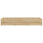 Add a modern touch to your bedroom with this bed frame with drawers! It makes a practical and decorative addition to your living space. Durable material: The bed frame is made of engineered wood. The engineered wood is of exceptional quality with a smooth surface and also features strength, stability, and resistance to moisture.Sturdy slats: The plywood slats provide good weight distribution, ensuring the mattress stays in place with every twist and turn of your body during sleep.Storage function: The included bed drawers provide ample storage space for storing your essentials, keeping your room clean and tidy. Good to know:A mattress is not included with this bed. We do offer a various selection of mattresses. You can check our shop for a matching mattress.