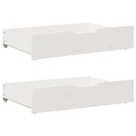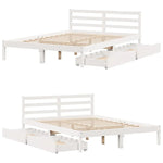 Get a better restful night's sleep from this bed frame! It makes a welcoming addition to any bedroom. Stable and long-lasting frame: Solid pinewood is known for its strength and durability. Its straight grains and distinctive knots contribute to its rustic charm.Slatted base for optimal support: The bed frame is equipped with a slatted base for support and breathability for your mattress.Make full use of space: This bed frame features two drawers underneath, providing storage for items like extra bedding, seasonal clothing, and toys.Effortless manoeuvrability: This under-bed storage drawer features four wheels, providing smooth and effortless manoeuvrability for sliding in and out from beneath your bed. Good to know:A mattress is not included with this bed. We do offer a various selection of mattresses. You can check our shop for a matching mattress.