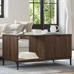 This coffee table is a perfect blend of modern aesthetics and functionality. Designed for living rooms, its engineered wood construction and sleek black frame bring a contemporary vibe, harmonizing effortlessly with various décor styles. With ample storage space provided by its compartments and hinged doors, it's both practical and stylish, making it an ideal piece for those who value organization and design in their living space. Engineered Wood Surface The coffee table features a smooth, abrasion-resistant engineered wood surface, providing a refined look that complements modern interiors while ensuring long-lasting use. Its durable finish resists daily wear and tear, making it a practical option for homes with high foot traffic or active lifestyles. Powder-Coated Frame Built with a robust powder-coated steel frame, this piece promises reliable strength and support. The powder-coated finish protects against scratches while adding a subtle sheen, ensuring the table remains a focal point in any living room. Integrated Storage Compartments With innovative storage compartments and hinged doors, this coffee table offers a convenient way to organize essentials like magazines and remote controls. Each compartment is easily accessible, allowing users to keep the living space uncluttered and tidy, proactively enhancing the room's aesthetic. Leveling Feet Equipped with adjustable leveling feet, the table stabilizes effortlessly on uneven flooring, providing peace of mind and extra support. This feature is particularly beneficial in older homes with uneven surfaces, maintaining the table's position securely. Tab Pull Handles The table incorporates sleek tab pull handles for minimalistic accessibility. This fuss-free design element adds to the modern aesthetic, ensuring that each interaction with the table is smooth and seamless, reinforcing the piece's functional appeal.