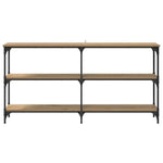 This Industrial Console Table is a striking piece ideal for contemporary living spaces. With its rectangular shape, this table serves both aesthetic and functional purposes. Its robust and raw industrial design, inspired by urban lofts and warehouses, is paired with practicality for modern homes. Whether used in an entryway, as a clever room divider, or neatly under a wall-mounted TV, this piece enhances any home's ambiance and functionality. Showcasing a spatial dynamic, it's a perfect addition for those who appreciate sophisticated but practical design. Premium Materials: Crafted with engineered wood and powder-coated steel, this piece boasts durability and a refined, industrial look. The combination of materials ensures the table is resistant to daily abrasions, maintaining its appearance even with substantial use. Its rustic allure makes it an ideal conversation piece and a functional addition to any space. Board Shelves: Featuring board shelves, this table provides ample room for showcasing decorative items or storing essentials. The shelves offer flexibility, allowing users to customize their display according to preference without compromising style. Whether you choose to showcase vases, books, or media equipment, the options are endless. Proud Footing: Supported by a powder-coated steel frame with adjustable levelers, this table ensures stability on any surface. The levelers are particularly useful on uneven floors, providing users with peace of mind and added functionality. This sturdy foundation supports daily use and contributes to the table's rugged elegance. Functional Design: This console table's narrow profile allows it to fit seamlessly in tight spaces, making it perfect for hallways, living rooms, or small apartments. It showcases functionality with flair, providing an ideal surface for both decoration and utility without encroaching on space. User Care: Assembly requires two individuals with a screwdriver, adhering to the provided manual. Maintenance has been simplified to extend the table's life, with instructions to avoid harsh chemicals and abrasives, emphasizing the minimal effort needed to keep it pristine for years.
