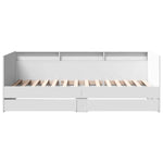 This 2-in-1 daybed with drawers, serving as both a sofa and bed, makes a practical and eye-catching addition to your living room or bedroom. Versatile daybed: The sofa bed functions as a sofa during the day and as a bed at night, providing a convenient solution for hosting guests. Ample storage space: This guest bed has 2 drawers with wheels that provide ample space for storing your clothes, socks, toys, cushions, etc.Solid construction: This day bed sofa has a sturdy frame made of engineered wood. The engineered wood is of exceptional quality with a smooth surface and features strength, stability and resistance to moisture. Good to know:The delivery includes a daybed frame only. The mattress is not included. You can check our shop for the matching mattresses.
