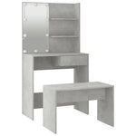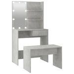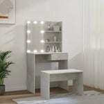 The trendy dressing table set gives your bedroom a timeless, refined look. The dressing table set with LED is a perfect addition to your bedroom decor and also keeps your cosmetics close at hand! Stable material: The engineered wood is of exceptional quality with smooth surface and also features strength, stability and resistance to moisture.Utility mirror: The dressing table with mirror is perfect for your daily beauty routine. The mirror allows you to take care of your facial skin and wear your makeup too!Ample storage space: The dressing table with stool provides ample space for easy access to your make-up, jewellery and everyday essentials.LED light: The dressing table also has LED bulbs with USB, which are easy to switch modes from warm to cold white. The featured LED bulbs around mirror illuminate your beauty as well.Wide applications: This dressing table set is suitable for various scenes, such as your bedroom, cloakroom and any other room you want to place it in. WARNING:In order to prevent overturning, this product must be used with the wall attachment device provided. Note:Each product comes with an assembly manual in the box for easy assembly.