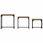 These Industrial Nesting Coffee Tables offer a dynamic blend of style and functionality, making them the perfect addition to any modern living space. With their sleek, rectangular shape and robust design, these tables fuse urban practicality with contemporary elegance. The set comprises three tables, crafted to fit seamlessly under one another, providing a space-saving solution that is aesthetically versatile and perfect for various occasions. The textured, matte finish and black steel frame give these tables a distinctive and bold look, making them an ideal centerpiece in any living room. Engineered Wood Surface Durable and stylish, these tables feature a quality engineered wood top that provides an elegant yet resilient surface. The smooth finish is designed to enhance the textured appearance, ensuring the tables maintain their designer appeal through years of service. Black Powder-Coated Frame Supporting the surface is a robust black powder-coated steel frame, offering a blend of strength and industrial flair. This finish protects against wear and tear, ensuring longevity and stability for everyday use. Ideal for handling heavy objects or unexpected bumps, the frame supports active home environments. Space-Efficient Nesting Design The set includes three tables that slide neatly under one another, allowing users to free up space or expand when entertaining guests. Each table serves a unique purpose, from hosting drinks on the main surface to providing extra room for snacks or personal items, adapting seamlessly to situational needs. Square Steel Legs The square steel legs provide a sturdy base for the tables, complementing the industrial design with a minimalist touch. These legs ensure the tables remain stable on a variety of surfaces, from carpets to hardwood, enhancing versatility and visual appeal in any environment. Simple Maintenance Designed with ease in mind, these tables only require a regular wipe with a damp cloth to maintain their lustrous look. Their robust construction minimizes worry over daily wear, ensuring they remain a fashionable and practical choice for modern homes.