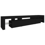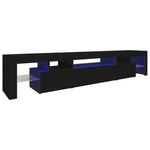 Featuring a trendy yet practical design, this TV cabinet with LED lights definitely becomes a focal point of your room. Practical material: The engineered wood is of exceptional quality with smooth surface and also features strength, stability and resistance to moisture. Colourful LED lights: The TV stand features RGB LED lights, which has different menus to change the colour of lights and let the colour adjust automatically differently. The LED lights underline the modern look and contribute to the trendy feeling.Ample storage space: The TV unit provides plenty of storage space for keeping your magazines, books, remote controls and other small items well-organised and within easy reach.Displaying function: The sturdy top of media cabinet is ideal for displaying decorative objects, photo frames, or potted plants. Note:The product has a USB connector, but the certified 5V USB power source is not included.Each product comes with an assembly manual in the box for easy assembly.