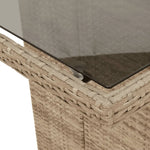 Enjoy a cup of coffee or have a chat with your family and friends in the garden, backyard, or on the balcony with this comfortable garden dining set! Durable material: PE rattan, also known as poly rattan, is a strong, low-maintenance synthetic material that looks like natural rattan. It's lightweight, easy to clean, and commonly used for outdoor furniture due to its durability and weather-resistant properties.Adjustable backrest and footrest: This garden seat has a handle. You can adjust the backrest and footrest to any position by pulling the handle, and quickly return them to their original positions.Comfortable seat experience: This outdoor furniture, complete with thickly padded cushions, offers a comfortable seating experience.Removable and washable cover: These seat cushions feature removable covers for easy washing and maintenance. The back cushions have a flap at the back for easy attachment to the backrests.Glass tabletop: The outdoor table's top is made from strong and durable tempered glass, making it easy to clean with a damp cloth and adding a touch of elegance to your outdoor space. Good to know:To make sure your outdoor furniture stays beautiful, we recommend protecting it with a waterproof cover.