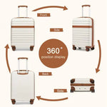 KSK2484 - Kono 20 Inch Stylish Lightweight Hard Shell ABS+PC Cabin Carry-On Suitcase with TSA Lock for Enhanced Security - Cream and Brown