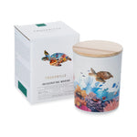 Each candle is hand-poured into a reusable 300 ml glass with a 100% cotton wick and covered with an FSC-certified wooden lid.