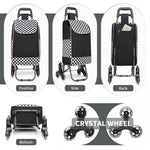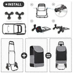 The shopping trolley also features a non-slip handle, side pockets, small back pocket with a zipper for your personal belongings and a foldable metal buckle design.