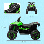 Enjoy an incredible four-wheeled adventure with HOMCOM's kids ATV. Designed for ages 3–5 years, it offers up to 45 minutes of continuous fun on a full 8–12-hour charge. With speeds of 3km/h or 6km/h, it's safe yet thrilling for little riders. They'll honk the horn, switch on the headlights and enjoy built-in tunes – just like a real ride. The wide seat keeps them comfy, while textured tyres provide smooth journeys on any surface. A joy-filled way to fuel imagination and outdoor fun!
