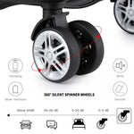 4 x 360 °swivel wheels distribute the weight of your suitcase evenly and ensure easy gliding through busy airports or train stations.