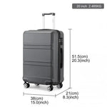 K1871-1L - Kono ABS 20 Inch Sculpted Horizontal Design Cabin Luggage - Grey